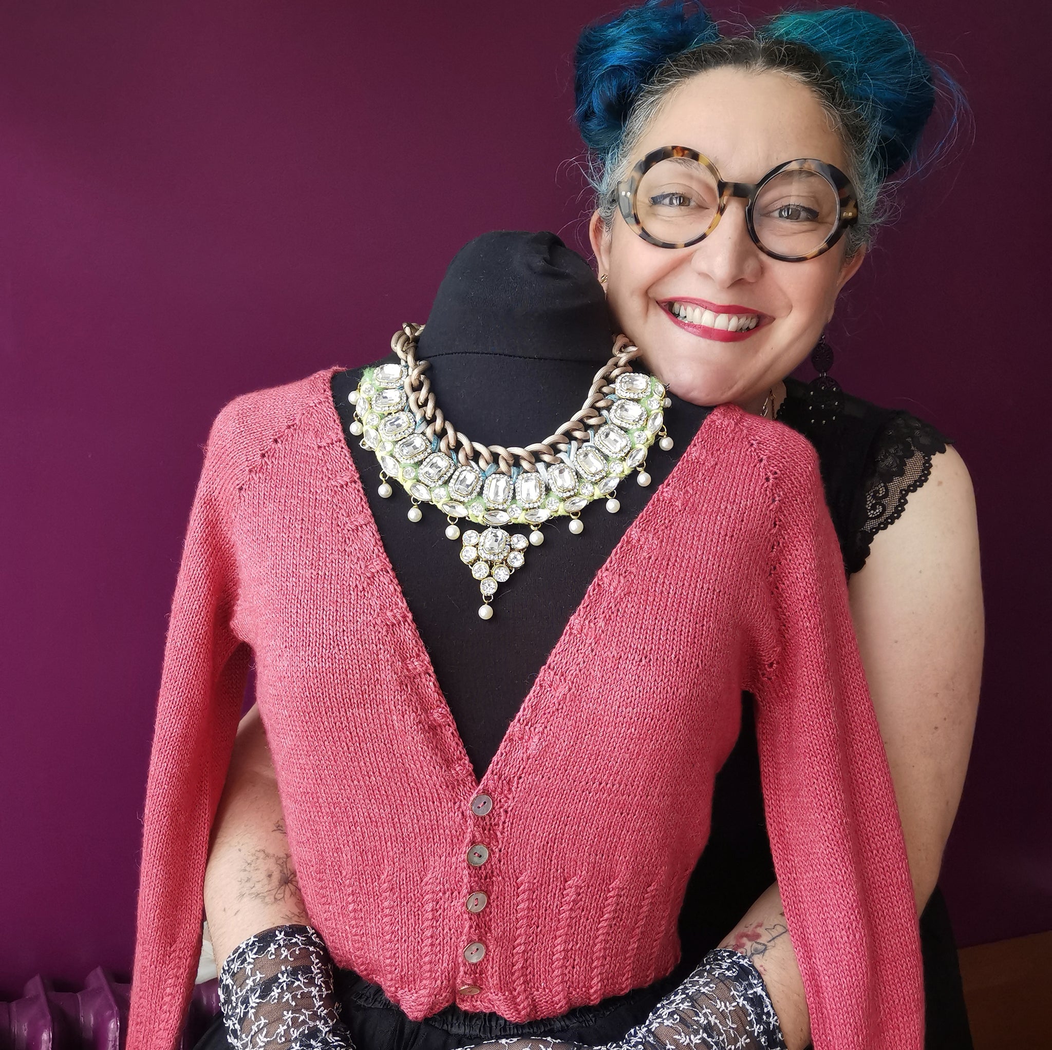 Lil Cardi is a light cardigan with a deep V-neck and a nicely shaped waist designed to enhance your curves. Wear over a full dress or high-waisted jeans for a most flattering va-va-voom effect!